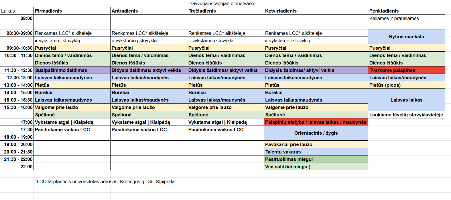 Stovyklos kaina: 210 EUR